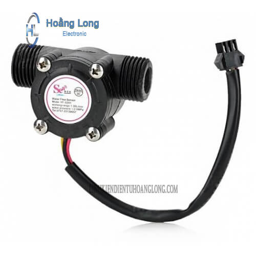 Cảm biến lưu lượng nước là cảm biến thường được dùng trong các máy bơm nước hồ cá, máy bơm nước nóng,..Khi nước chảy qua van cảm biến làm động cơ quay--> dẫn đến sự thay đổi ban đầu của cảm biến hall--> đầu ra tín hiệu xung vuông ( NPN).