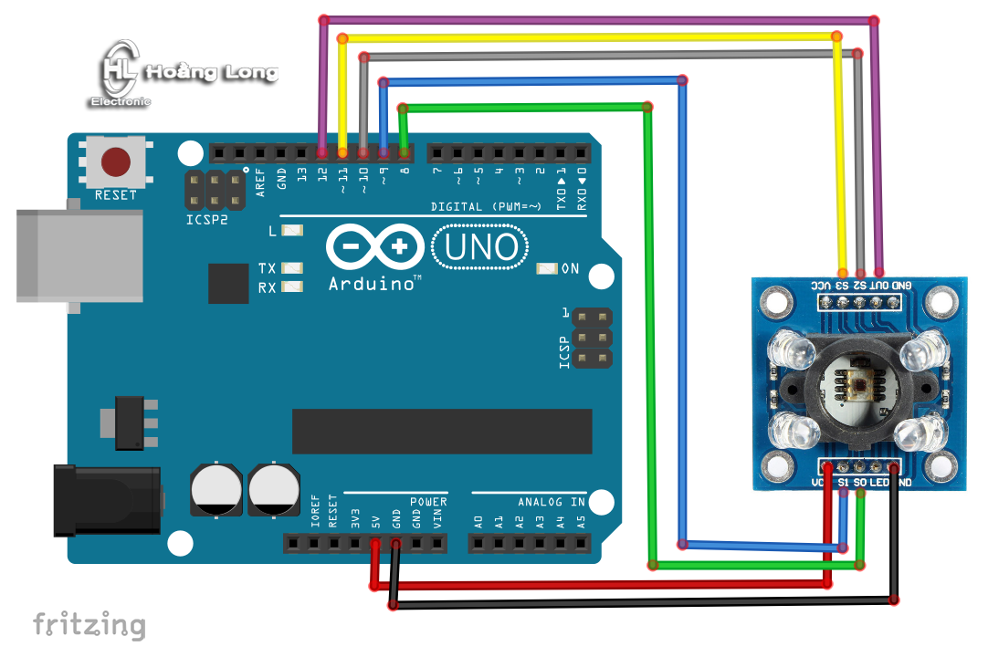 Cảm biến màu sắc TCS3200 Color Sensor được sử dụng để nhận biết màu sắc bằng cách đo phản xạ 3 màu sắc cơ bản từ vật thể là đỏ, xanh lá và xanh dương từ đó xuất ra tần số xung tương ứng với 3 màu này qua các chân tín hiệu, đo 3 tần số xung này và qua 1 vài bước chuyển đổi nhất định là bạn sẽ có đươc thông tin của màu sắc của vật thể cần đo.