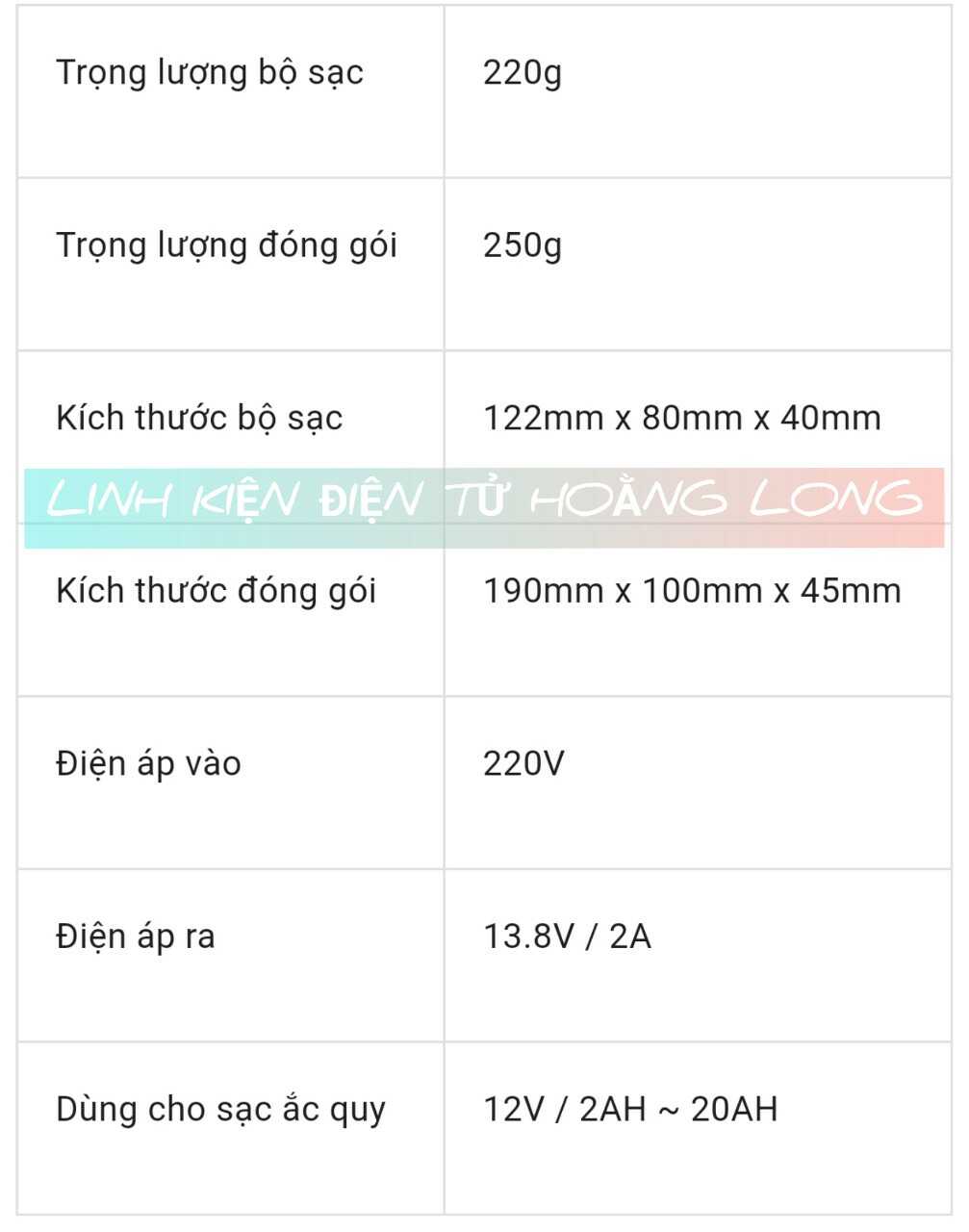 - Bộ sạc có chế độ bảo vệ an toàn ngắn mạch và ngược phân cực.