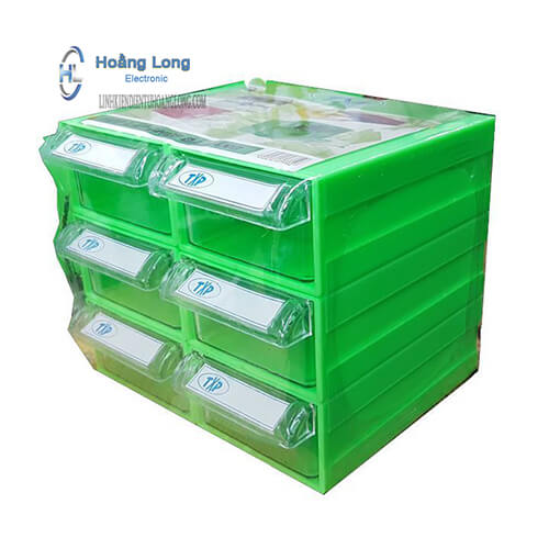 Có thể tháo, lắp cùng các hộp đựng linh kiện TVP khác tạo thành 1 tủ nhựa đựng linh kiện. Các ngăn đựng linh động, có thể chuyển tấm chắn từ ngăn này qua ngăn khác.