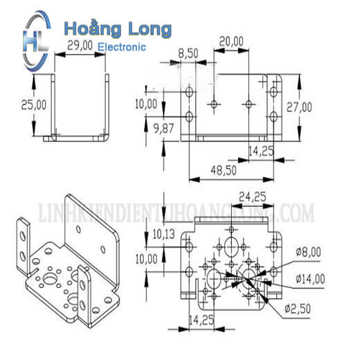 Khung Nhôm Cánh Tay Robot là sản phẩm dùng trong các ứng dụng cần chuyển động theo cơ chế khớp tay như cánh tay robot, Khung robot đón nắng pin mặt trời..vv. Sản phẩm bằng nhôm, thích hợp cho servo 995, 996.