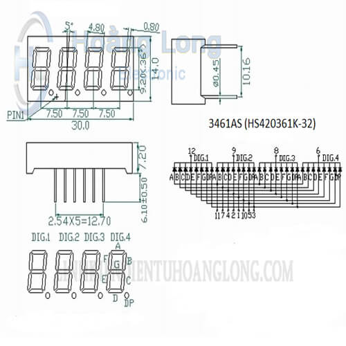 Led 7 Đoạn 0.36 4 Số Katot/AS (Sáng Đỏ)