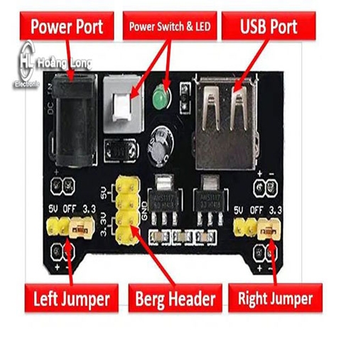 Mạch cấp nguồn Breadboard V2 được sử dụng với các loại Breadboard kích thước chuẩn như MB-102 hoặc loại MB-102 mini giúp cấp nguồn 3.3VDC hoặc 5VDC cho các đường dẫn nguồn của Breadboard để tiện lợi cho việc cấp nguồn cho các Module khi sử dụng.