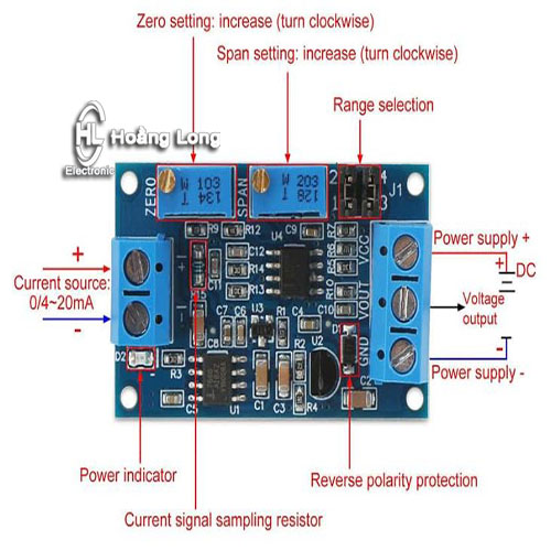 Mạch chuyển tín hiệu dòng áp Current to Voltage 0/4-20mA to 0-3.3V/5V/10V HW-685 được sử dụng để chuyển tín hiệu dòng điện từ 0/4~20mA sang các mức tín hiệu điện áp tương ứng 0~3.3V/5V/10V,