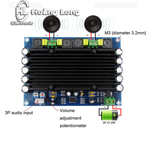 • Mạch khuếch đại âm thanh XH-M546 TPA3116D2 XH-M569 150W x 2 sử dụng ic kép TPA3116D2 với công suất tối đa mỗi kênh lên tới 150w, Mạch khuếch đại âm thanh này có kích thước nhỏ gọn, có thể điều chỉnh âm lượng ngõ ra trái phải trực tiếp trên board bằng biến trở, âm thanh ngõ vào jumper chuẩn 3.5