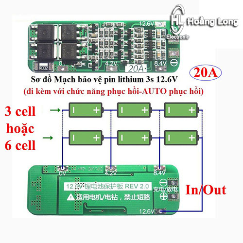 - Số cell sử dụng: 3 cell Li-ion hoặc 3 cặp (6 cell) cell Li-ion mắc nối tiếp, thậm chí nhiều hơn nữa (9, 12 cell,..,) tùy vào nhu cầu và diện tích vỏ pin mà có thể lắp nhiều cell song song hơn để có công suất cũng như dòng tải pin lớn hơn.