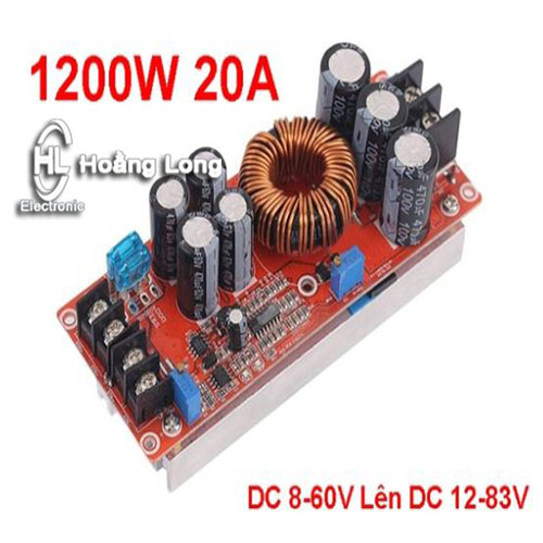 Mạch tăng áp 1200W có điều chỉnh trong khoảng 12v đến 83v.Mạch tăng áp DC 1200W với đầu vào từ 10 ~ 60V tăng điện áp lên 12 ~ 83V với yêu cầu điện áp đầu ra luôn lớn hơn điện áp đầu vào và có thể điều chỉnh điện áp, dòng điện đầu ra bằng biến trở với công suất lên đến 1200W