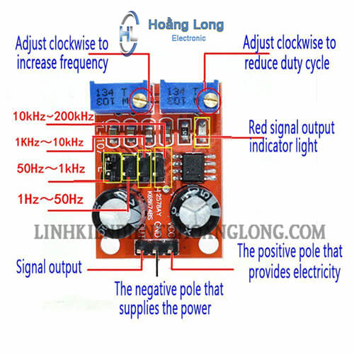 Board mạch nhỏ sử dụng chip NE555 quen thuộc như một máy phát tín hiệu sóng vuông được sử dụng cho các mục đích phát triển trong giai đoạn thử nghiệm, để tạo ra sóng vuông điều khiển motor hoặc tạo ra xung có thể điều chỉnh để kiểm soát mạch liên quan.