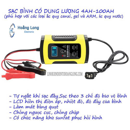 - Dùng cho bình: 12V 4AH-100AH