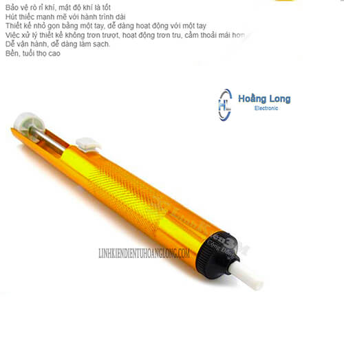 Súng hút thiếc là một trong những phụ kiện hàn rất quen thuộc và cần thiết đối với những bạn thường xuyên phải hàn mạch, chế cháo... được dùng để hút thiếc thừa, tháo chân linh kiện. Súng hút thiếc được thiết kế rất nhỏ gọn tiện lợi và dễ dàng sử dụng. súng hút thiếc được thiết kế dạng hình trụ chắc chắn bền bỉ.